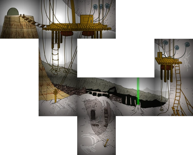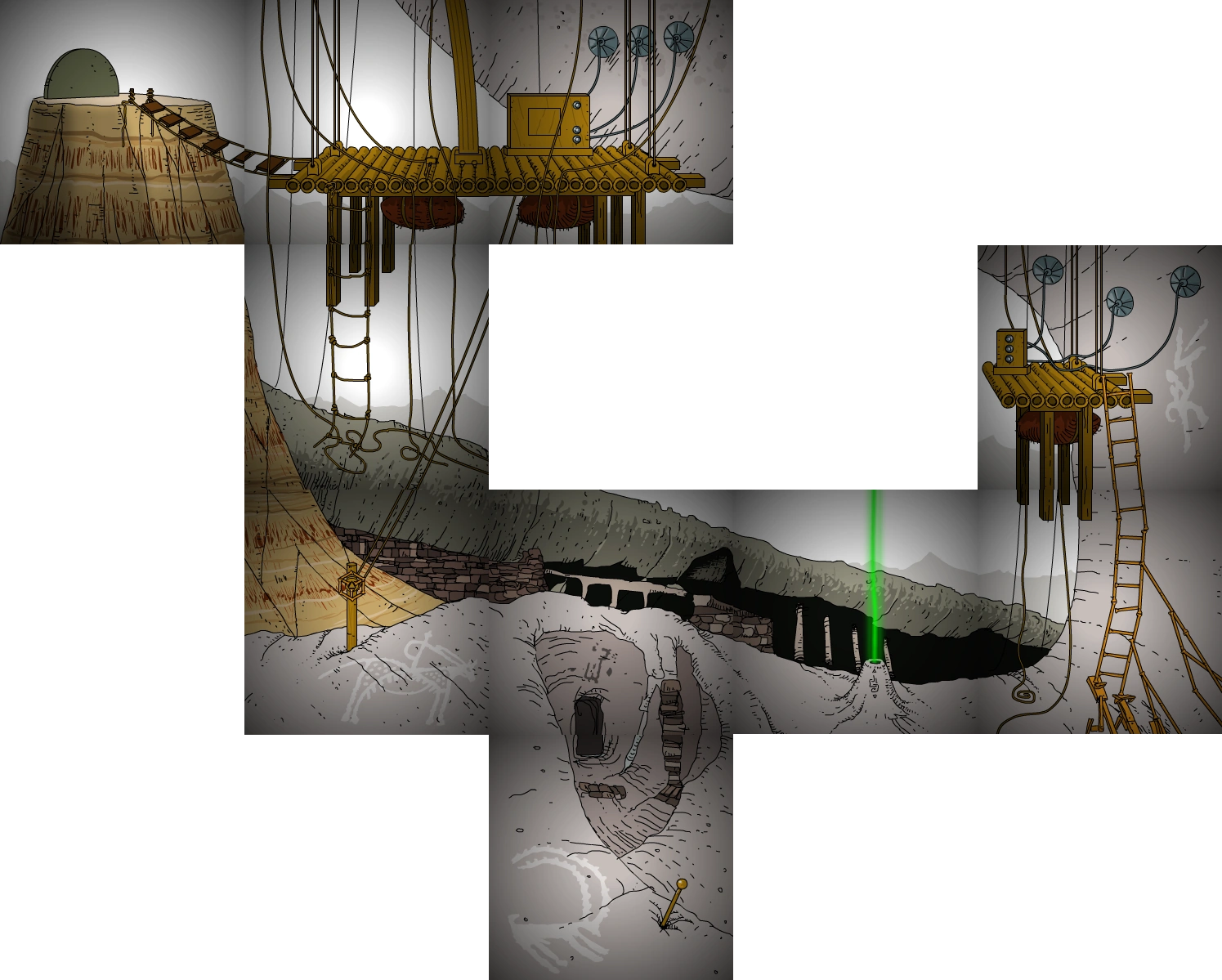 Эта локация, кажется, находится на месте археологических раскопок, расположенных в горной местности. На стенах из белого камня можно увидеть рисунки и прочие следы древней, по-видимому, исчезнувшей цивилизации. Повсюду установлены и подвешены платформы, сделанные из дерева, или из какого-то желтого металла. На них находятся различные аналитические инструменты, которые, вероятно, использовались для анализа камня и прочих археологических открытий.