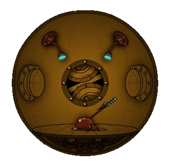 Капсула выглядит так, как будто сделана из бронзы или какого-то золотистого металла. Снаружи Капсулы располагается изогнутый полукругом стержень из такого же металла, держащий два колеса с каждого бока Капсулы, между которых проходят два кабеля, соединяющие Зимний дворец с Кораблем Лиз. У этой конструкции, кажется, есть зажим на конце двух рельс, по которым перемещается капсула, с помощью которого есть возможность состыковаться с различными местами, такими как Ядро.