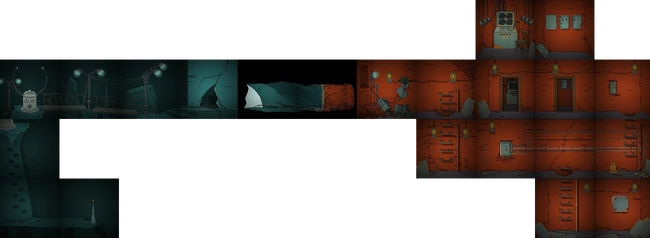 | 0,0 Корень • 1,0 Комната лимонной кислоты • 0,1 Комната заряжающего устройства • 2,0 Маяк • 0,2 Комната символов • 1,2 Комната металлического куба • 2,1 Древняя комната |