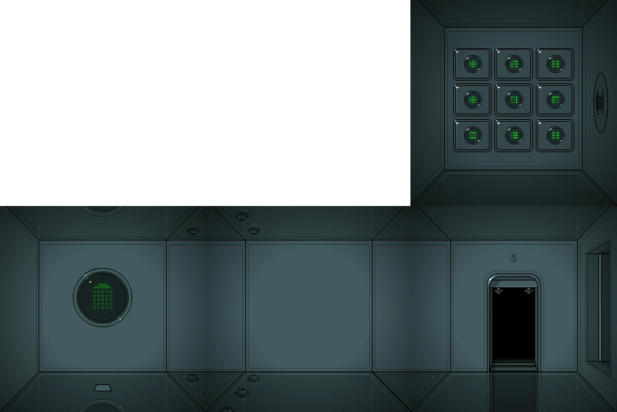 5-я область, опять же, выглядит довольно типично: стены, пол и потолок всё из того же блестящего металла. Здесь находится один-единственный терминал соединительного адаптера и матрица из сетки девяти (3х3) постоянно мерцающих огней.