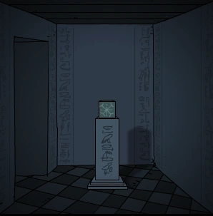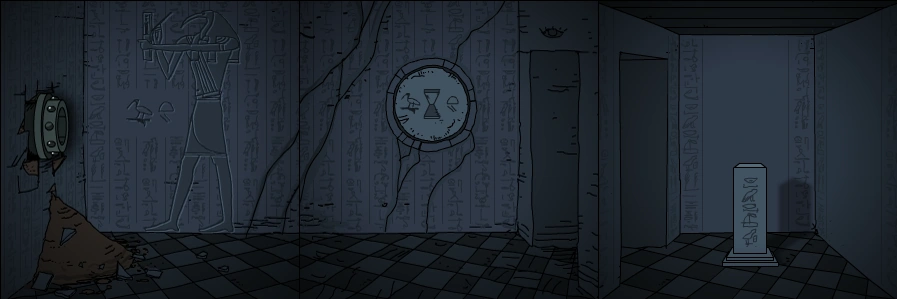 В стене здесь есть круглый камень, который можно повернуть. Из-за характерного изображения на камне, эту структуру иногда называют "Песочные часы". Вращение колеса заставит палату (и всё, что в ней находится) справа становиться или очень старой или новой (другими словами, можно манипулировать временем в этой комнате).