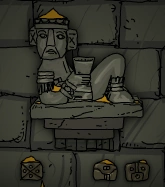 The circle god in the pi room is built with a design similar to Babylonian statues. It is unknown which god this statue represents.