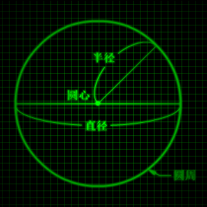 - Radius (半径, hankei), often denoted by r, is defined as the distance between any point on the circle and the center of the circle.