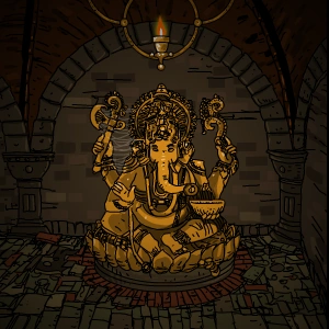 The temple in Submachine 9: The Temple also appears to have been strongly inspired by Hindu influences. The temple roof, which breeches up through the floor of the pyramid, resembles the roof of a Hindu temple, complete with statues or carvings of two Nāga, beings that take the form of snakes or serpents.