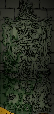 The face in the middle is the Aztec sun god/Lord of Heaven, Tonatiuh. Although this is a little obscure in the game, the deity's tongue is hanging out. This represents his desire to drink the blood from human sacrifices.