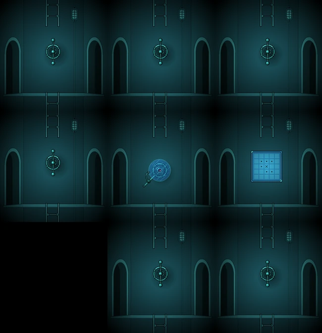 The rooms exhibit typical loop architecture, and the lighting is a cool blue (cold gray in Submachine: Legacy) color.